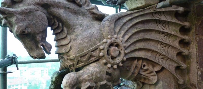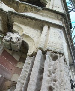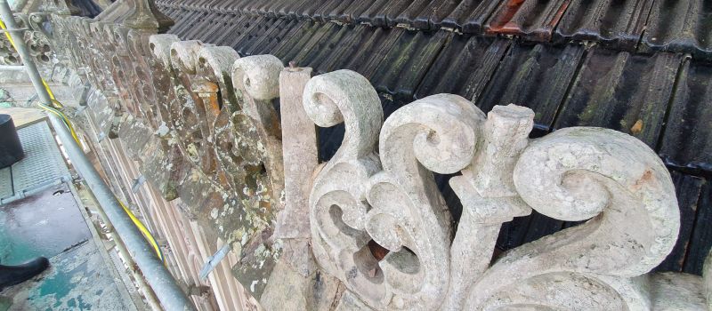 Las alveoliazaciones, por acción directa del viendo y el spray salino, son la consecuencia más llamativa de dicha exposición, especialmente sobre los elementos decorativos más detallados. Para evitar que el desgaste de la fachada siga avanzando se realizan trabajos de limpieza, consolidación y protección con biocida y consolidante que frenen dicho avance y que además permitan protegerla en el futuro.