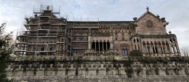 Desde su primera piedra colocada el 20 de mayo de 1882, pasaron casi 6 años hasta que terminaron las obras de este grandioso edificio neogótico proyectado por el arquitecto catalán Joan Martorell. Construido con piedra arenisca de Comillas, obras como este palacio mandado construir por el Marqués de Comillas, el Capricho de Gaudí, el Quiosco de Comillas o la Universidad Pontificia, hicieron que importantes arquitectos y artistas modernistas catalanes del momento dejaran su impronta en esta población.